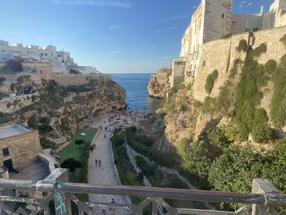 모노폴리에서 차로 약 10분, 또는 기차로 한 정거장만 이동하면 폴리냐노 아 마레(Polignano a Mare) 가 모습을 드러냅니다.